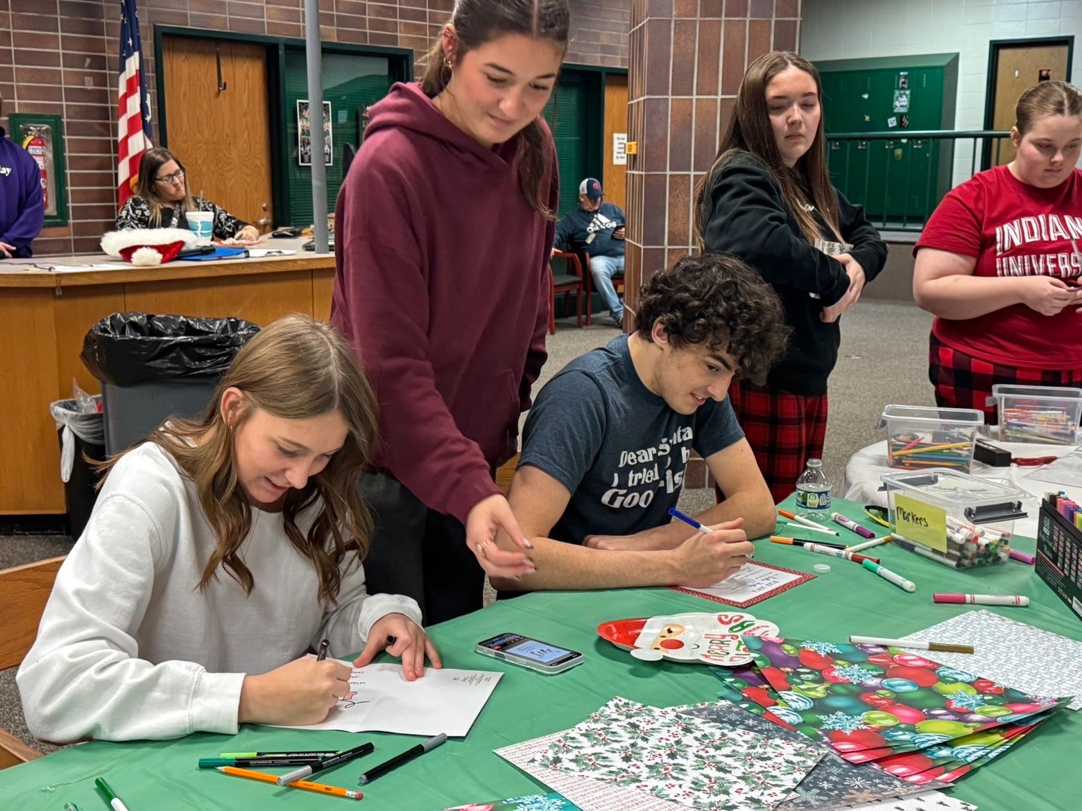 Students gathered in the media center Sunday evening for a Christmas party filled with movies, pizza, cookies, hot chocolate, games, and card-making. The handmade Christmas cards were created for local nursing home residents — and were delivered on Monday.